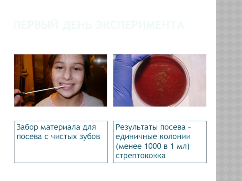 Слайд 14Первый день эксперимента