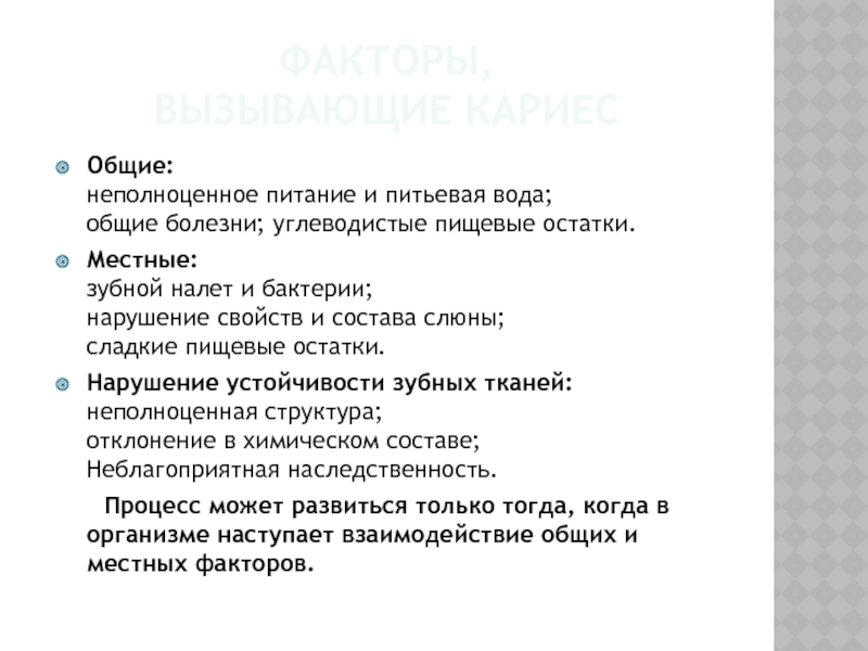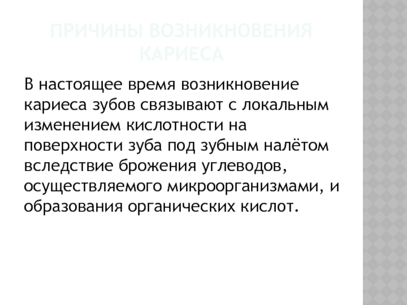 Слайд 8Причины возникновения кариеса