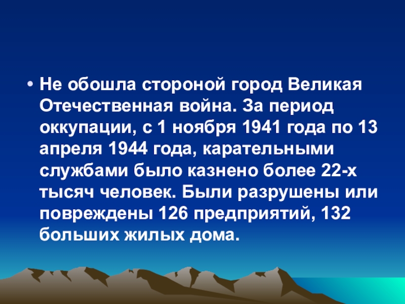 Слайд 11Не обошла стороной город Великая Отечественная война. За период оккупации, с