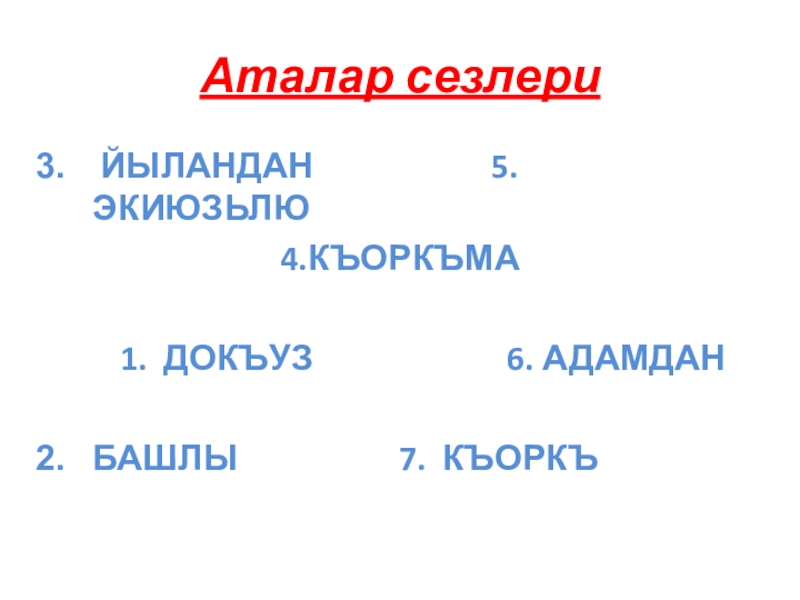 Аталар сезлери ЙЫЛАНДАН           5.  ЭКИЮЗЬЛЮ