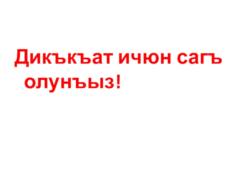 Слайд 12Дикъкъат ичюн сагъ олунъыз!