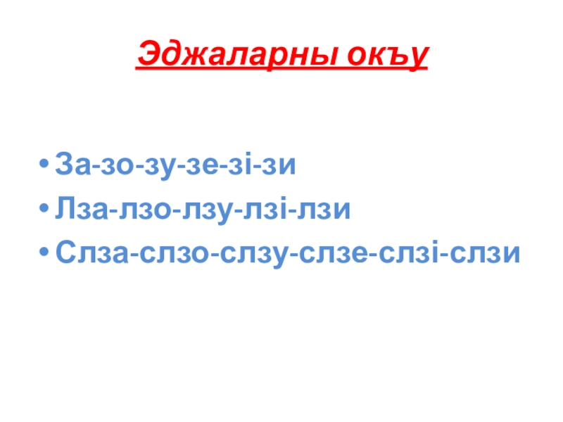 Эджаларны окъуЗа-зо-зу-зе-зі-зиЛза-лзо-лзу-лзі-лзиСлза-слзо-слзу-слзе-слзі-слзи