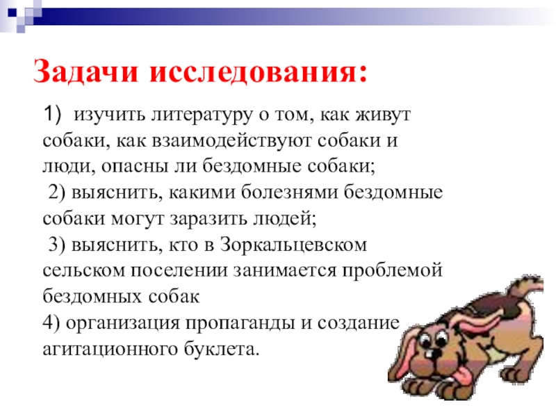 2) выяснить, какими болезнями бездомные собаки могут заразить людей;