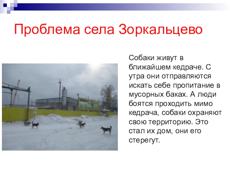 3) выяснить, кто в Зоркальцевском сельском поселении занимается проблемой бездомных собак
