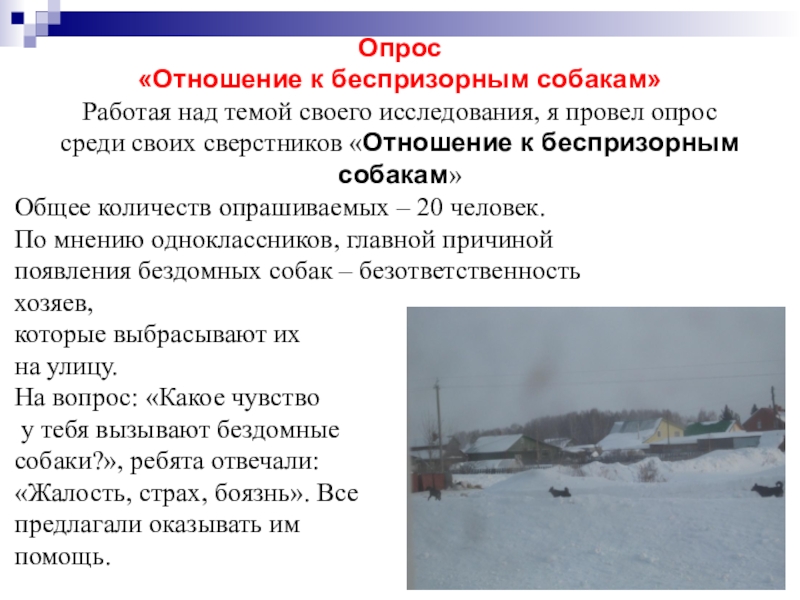 опрос среди своих сверстников «Отношение к беспризорным собакам»