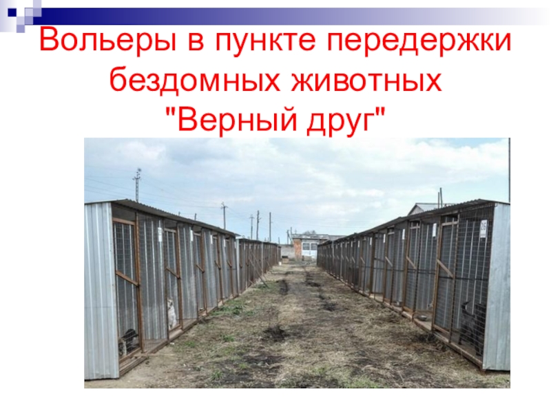 Слайд 17Вольеры в пункте передержки бездомных животных