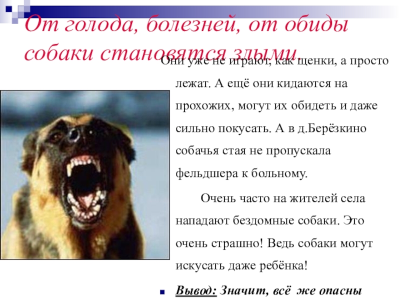 Слайд 13От голода, болезней, от обиды собаки становятся злыми.