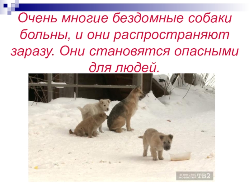 Слайд 12Очень многие бездомные собаки больны, и они распространяют заразу. Они становятся