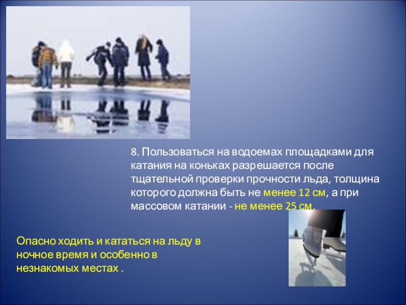 Опасно ходить и кататься на льду в ночное время и особенно в незнакомых местах .