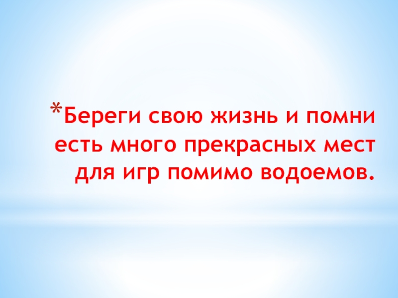 Слайд 8Береги свою жизнь и помни есть много прекрасных мест для игр