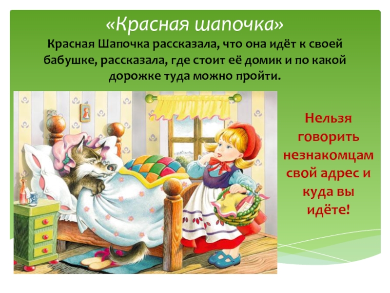 Нельзя говорить незнакомцам свой адрес и куда вы идёте!
