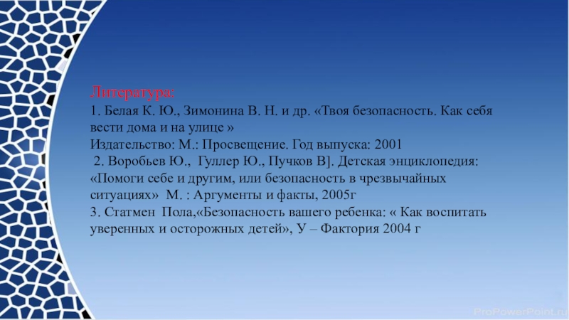 1. Белая К. Ю., Зимонина В. Н. и др. «Твоя безопасность. Как