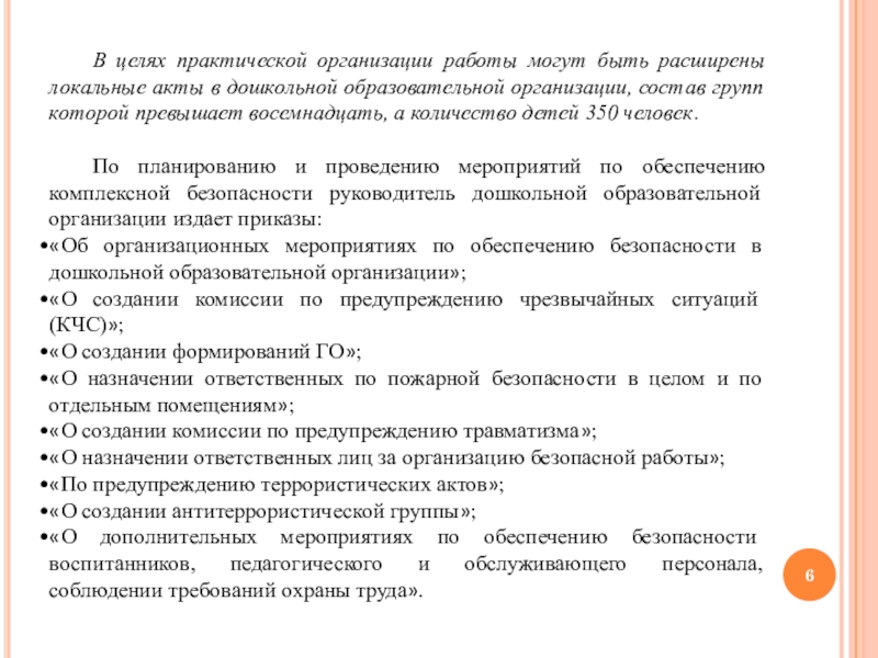 V. Мероприятия по усилению антитеррористической защищённости дошкольной образовательной организации