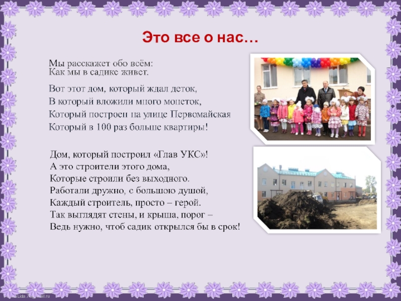Это сайт презентаций, где можно хранить и обмениваться своими презентациями, докладами, проектами, шаблонами в формате PowerPoint с другими пользователями. Мы помогаем школьникам, студентам, учителям, преподавателям хранить и обмениваться учебными материалами.