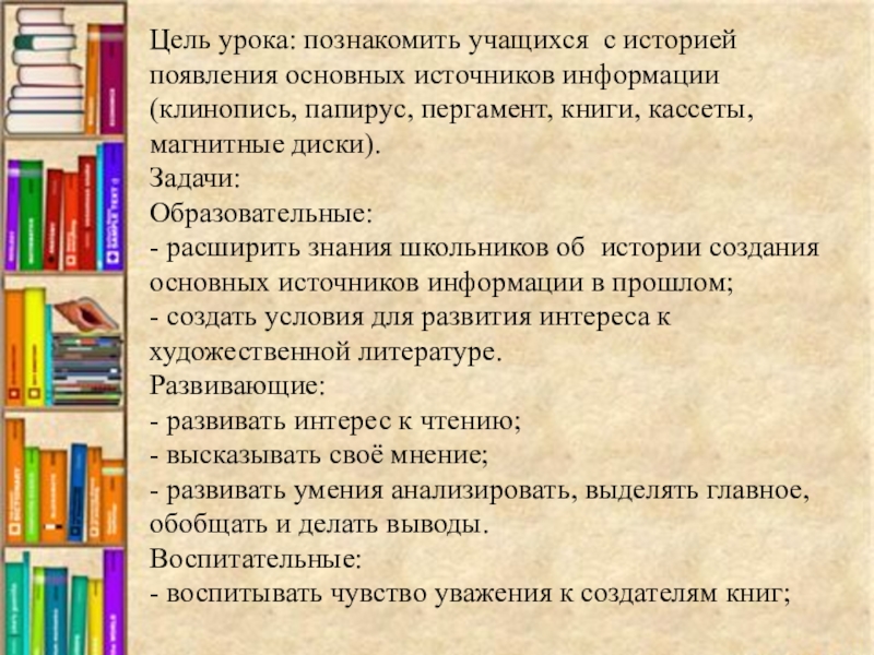 Это сайт презентаций, где можно хранить и обмениваться своими презентациями, докладами, проектами, шаблонами в формате PowerPoint с другими пользователями. Мы помогаем школьникам, студентам, учителям, преподавателям хранить и обмениваться учебными материалами.