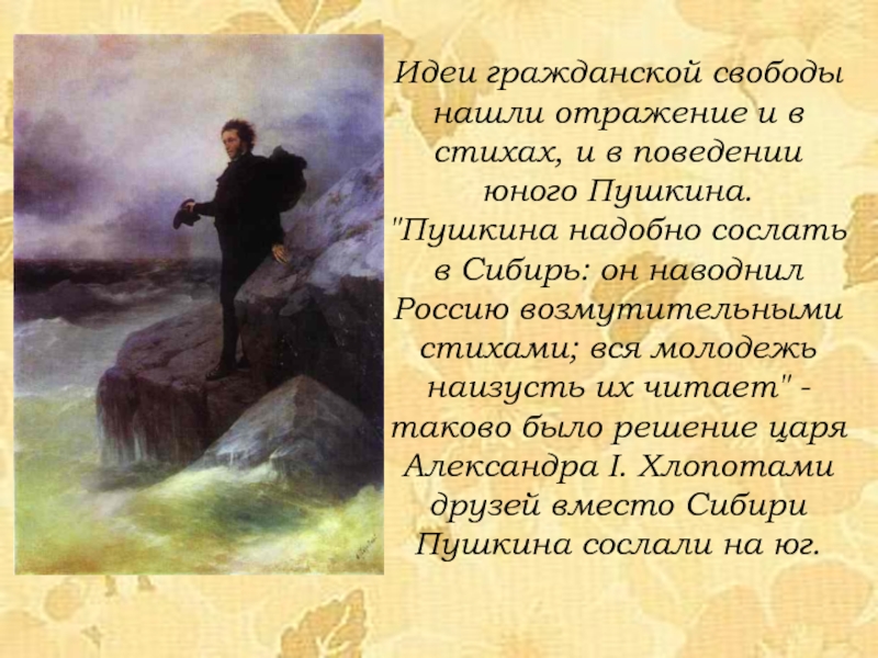 1824 года ссылка в родительское имение Михайловское Псковской губернии.