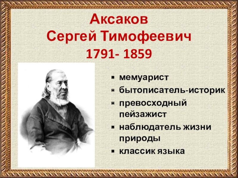 Слайд 3 Сергей Тимофеевич Аксаков родился 1 октября 1791г. в Уфе.