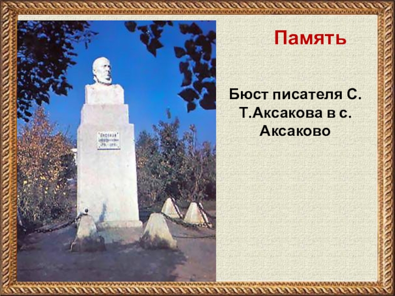 Слайд 22Бюст писателя С.Т.Аксакова в с.Аксаково