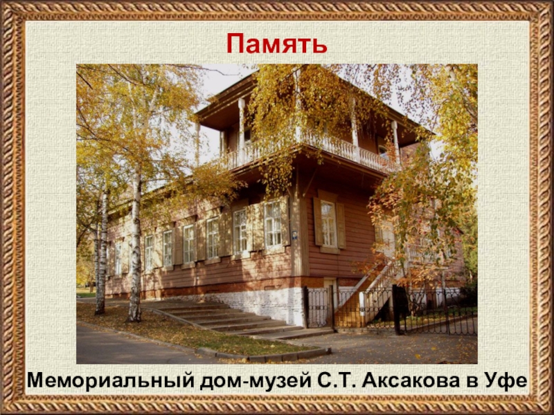 Слайд 18Мемориальный дом-музей С.Т. Аксакова в Уфе