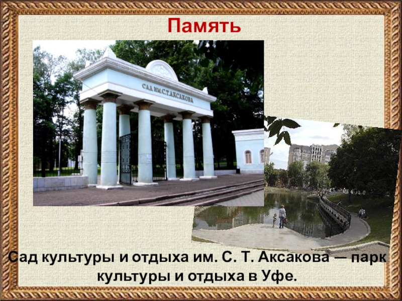 Слайд 19Сад культуры и отдыха им. С. Т. Аксакова — парк культуры