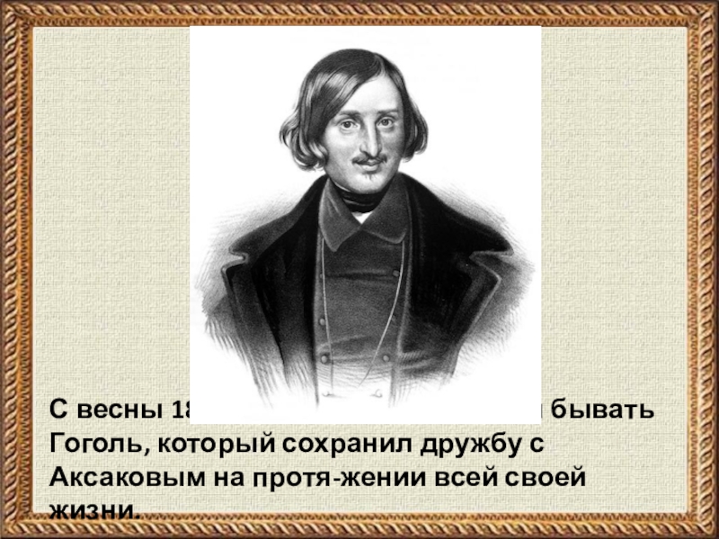 Слайд 11С весны 1832 года у Аксаковых стал бывать Гоголь, который сохранил