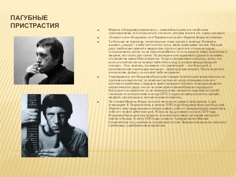 В своей книге «Владимир, или Прерванный полёт» Марина Влади вспоминае