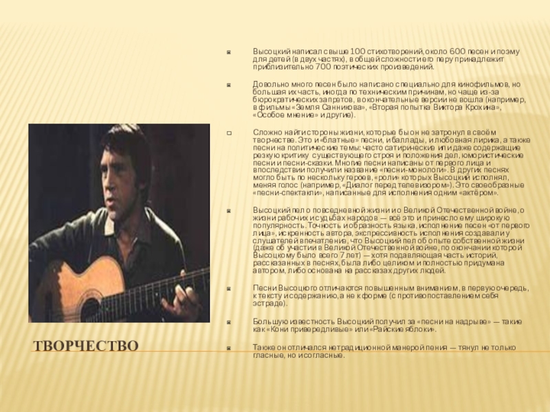 Высоцкий написал свыше 100 стихотворений, около 600 песен и поэму для