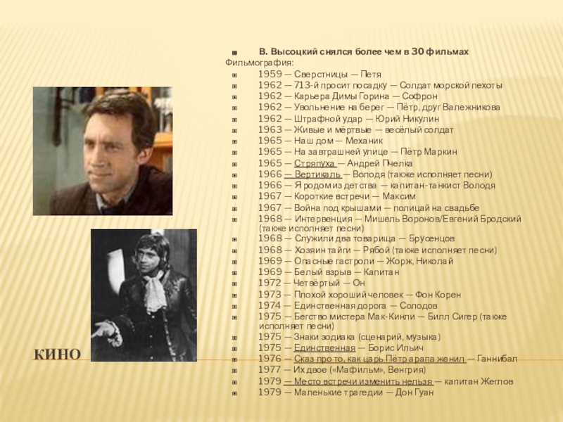 В. Высоцкий снялся более чем в 30 фильмах