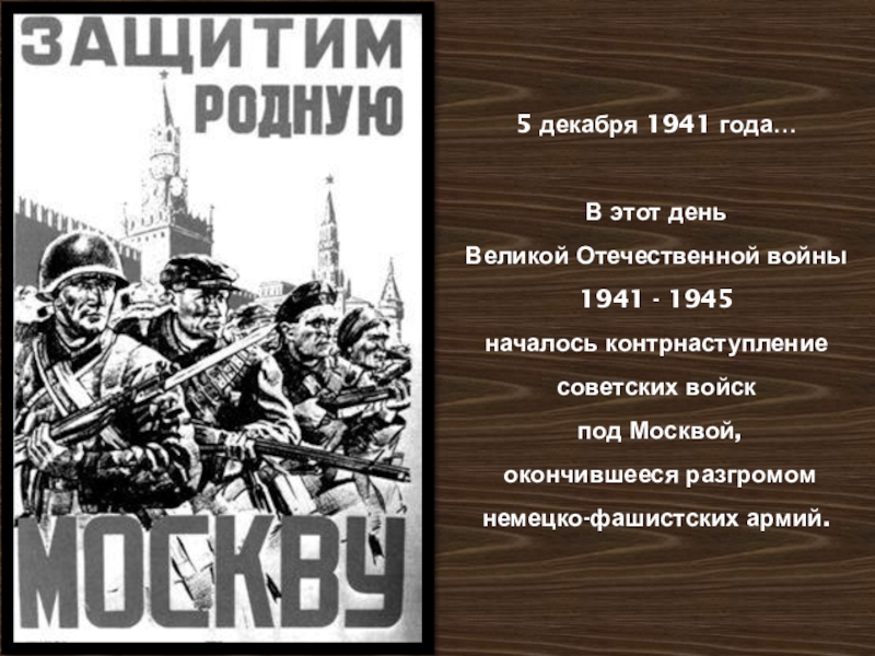 Слайд 29К Москве в суровые годы Великой Отечественной войны были прикованы взоры миллионов