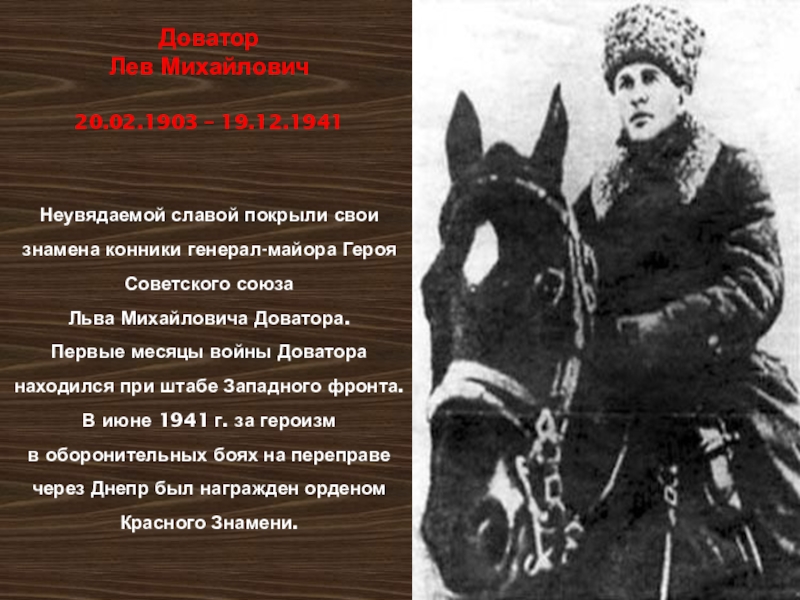 Слайд 47Гитлеровское командование назначило за голову Доватора