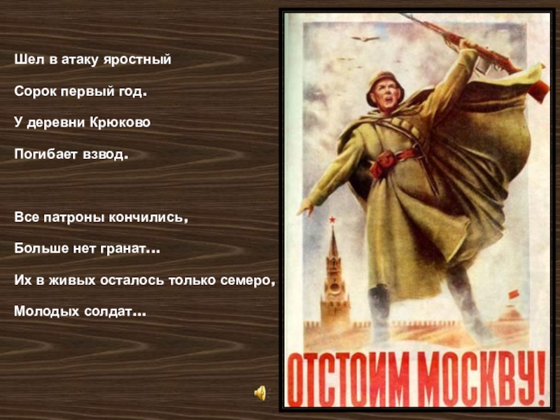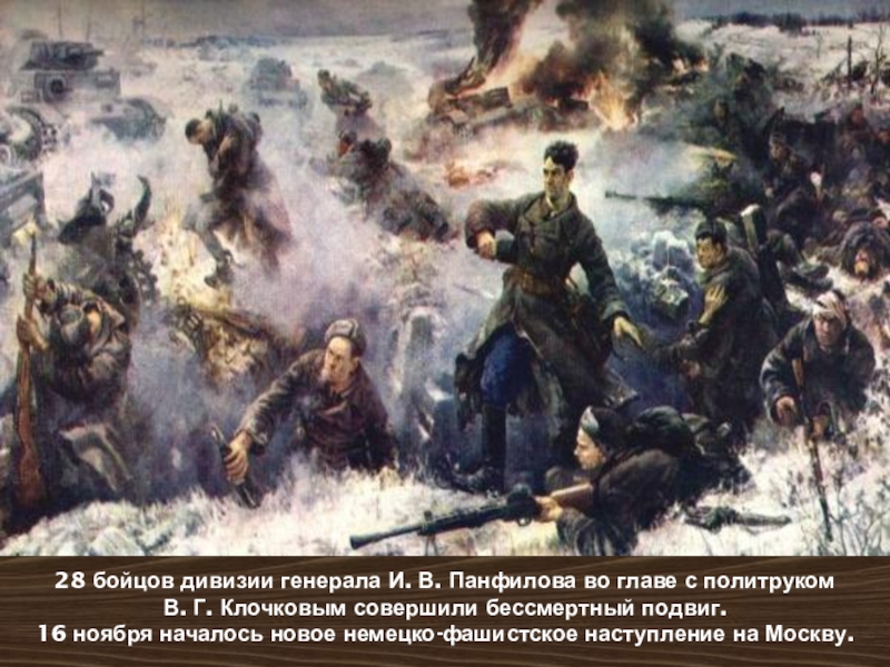 Слайд 3028 бойцов дивизии генерала И. В. Панфилова во главе с политруком