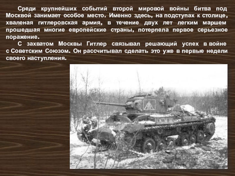 Слайд 3 Среди крупнейших событий второй мировой войны битва под Москвой занимает особое