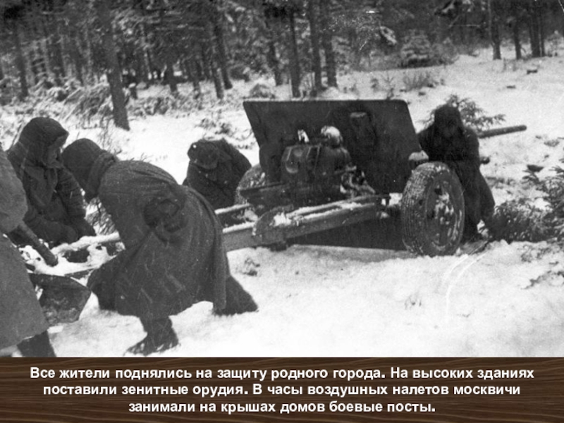 зенитные орудия. В часы воздушных налетов москвичи занимали на крышах домов боевые посты.