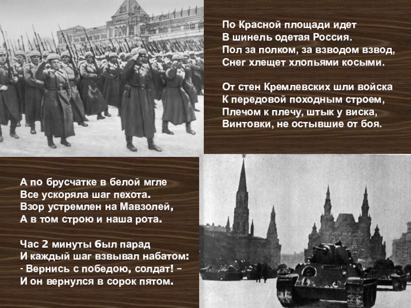 в Москве и приветствовал красноармейцев с трибуны мавзолея, вселяло в них уверенность и бодрость.