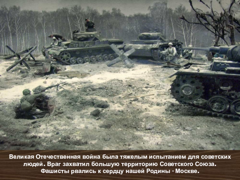 Слайд 6Великая Отечественная война была тяжелым испытанием для советских людей. Враг захватил