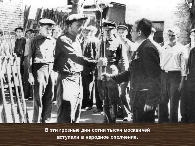 Слайд 12В эти грозные дни сотни тысяч москвичей