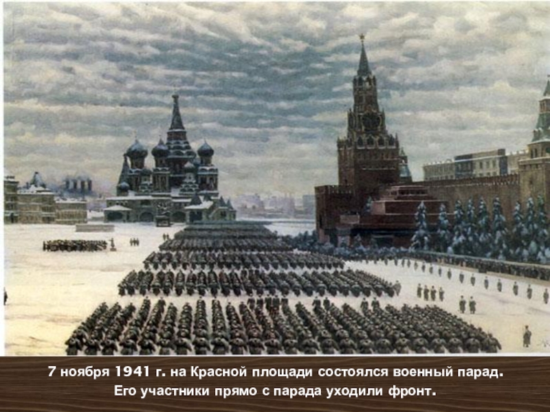 Слайд 187 ноября 1941 г. на Красной площади состоялся военный парад.