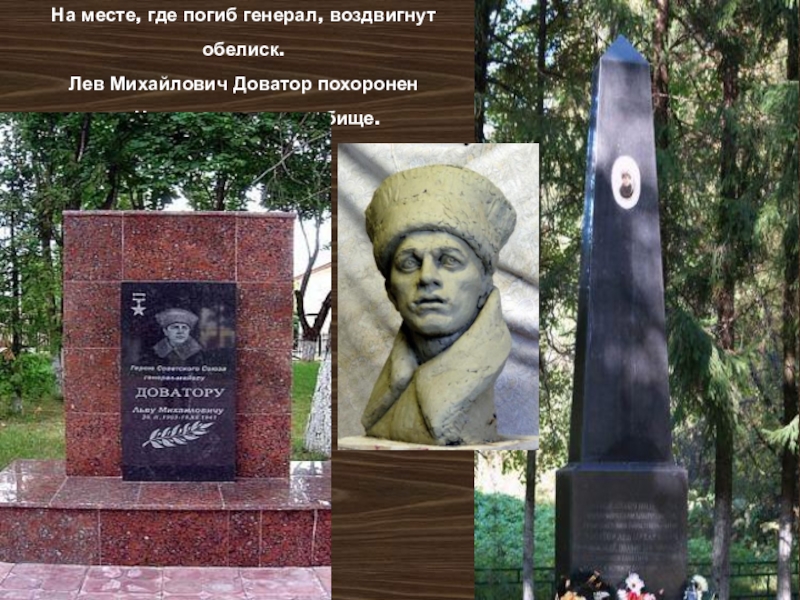 Слайд 49На месте, где погиб генерал, воздвигнут обелиск.