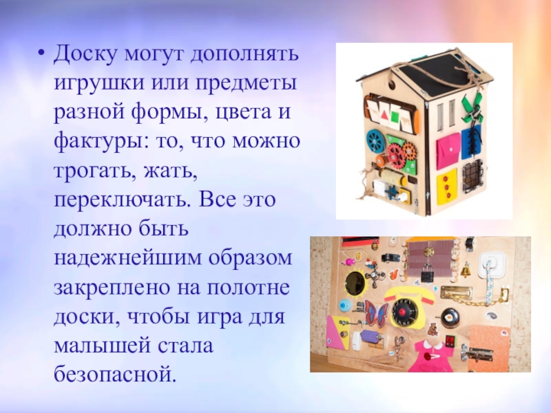 выключателями, щеколдами, крючками и прочими маленькими «опасностями», которые ребенку трогать обычно запрещено.