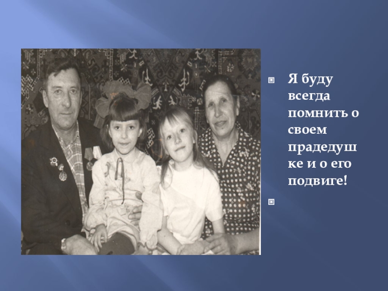 Слайд 21Я буду всегда помнить о своем прадедушке и о его подвиге!