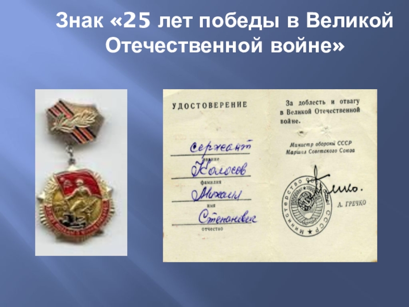 Слайд 17Знак «25 лет победы в Великой Отечественной войне»