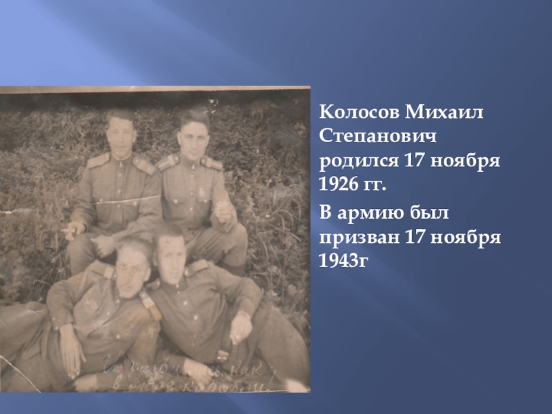 Слайд 4Колосов Михаил Степанович родился 17 ноября 1926 гг.