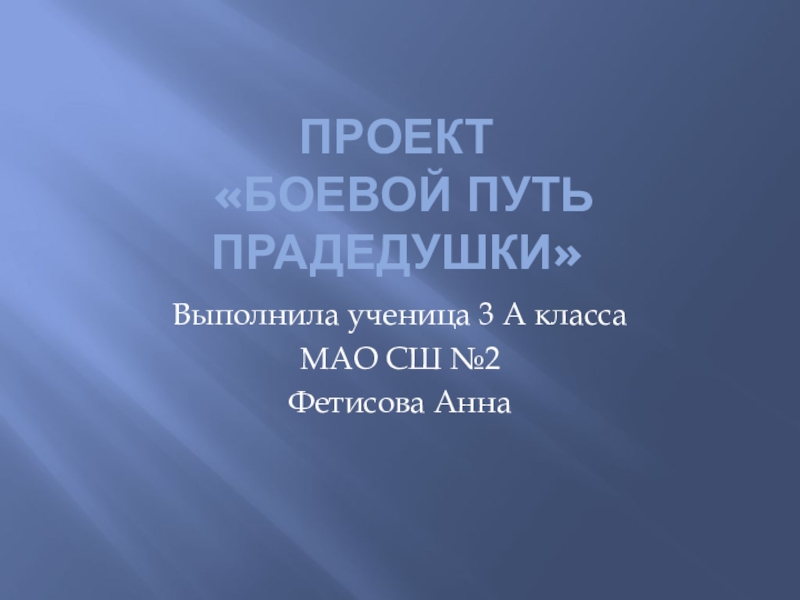 ПРОЕКТ  «Боевой путь прадедушки»Выполнила ученица 3 А классаМАО СШ №2Фетисова Анна