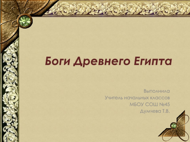 Боги Древнего ЕгиптаВыполнилаУчитель начальных классовМБОУ СОШ №45Думчева Т.В.