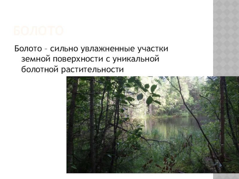 Болото – сильно увлажненные участки земной поверхности с уникальной болотной растительности