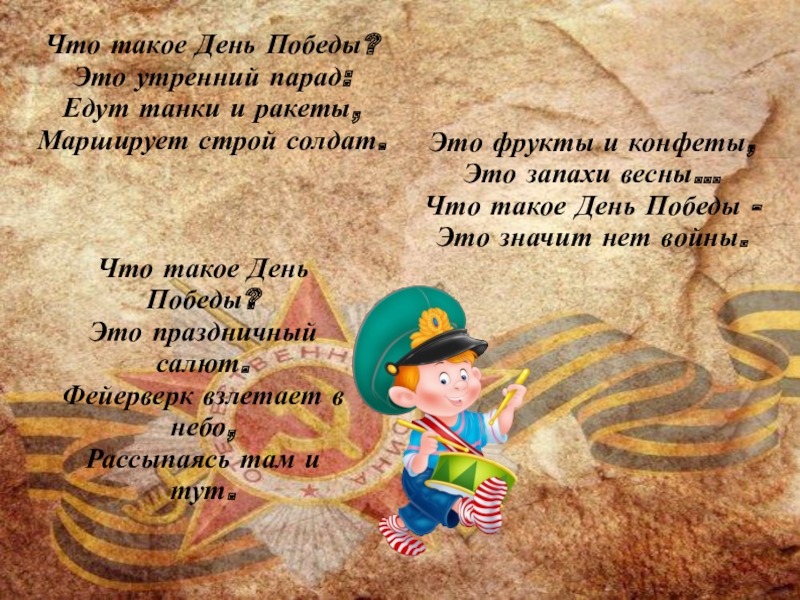 Это сайт презентаций, где можно хранить и обмениваться своими презентациями, докладами, проектами, шаблонами в формате PowerPoint с другими пользователями. Мы помогаем школьникам, студентам, учителям, преподавателям хранить и обмениваться учебными материалами.