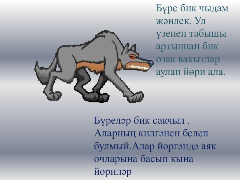 Бүре бик чыдам җәнлек. Ул үзенең табышы артыннан бик озак вакытлар аулап йөри ала.