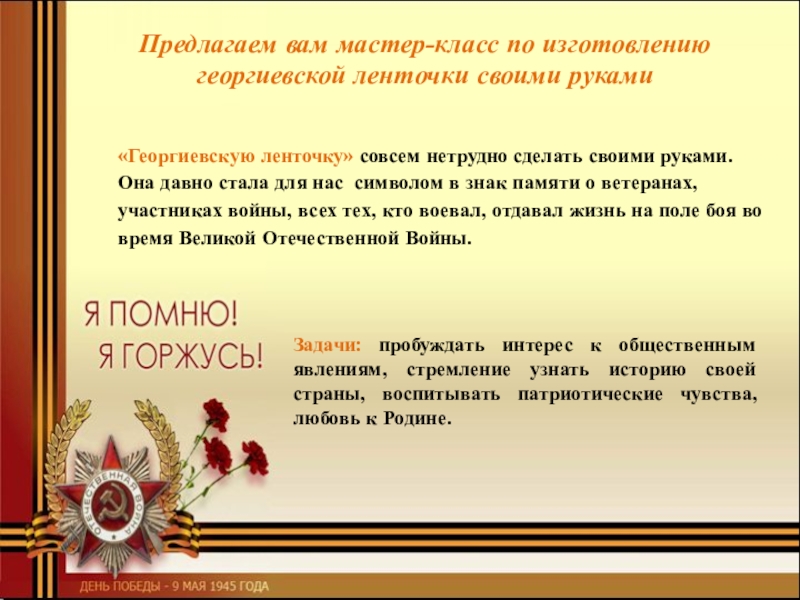 Предлагаем вам мастер-класс по изготовлению георгиевской ленточки своими руками