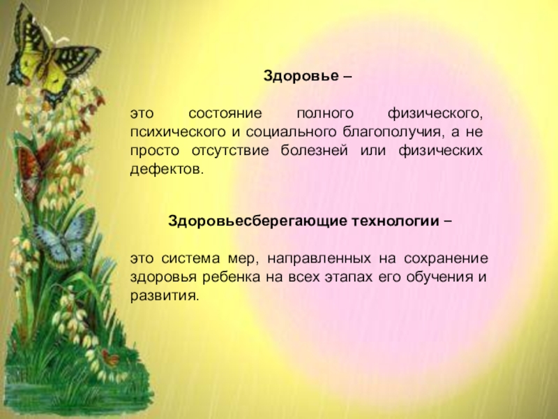 это состояние полного физического, психического и социального благополучия, а не просто отсутствие болезней или физических дефектов.