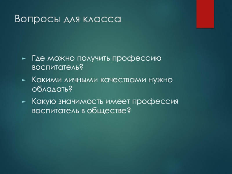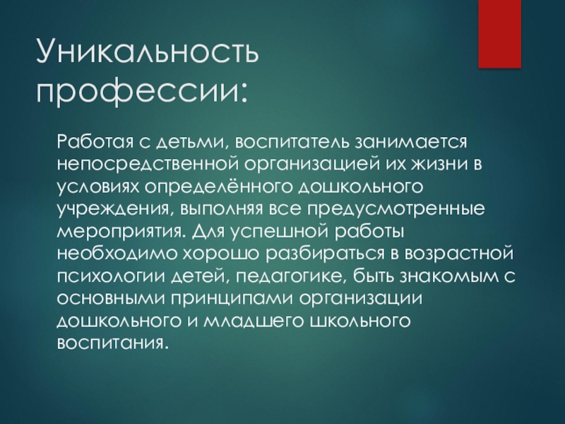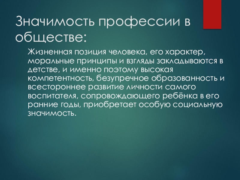 Профессия воспитатель – это будущая профессия нашего города